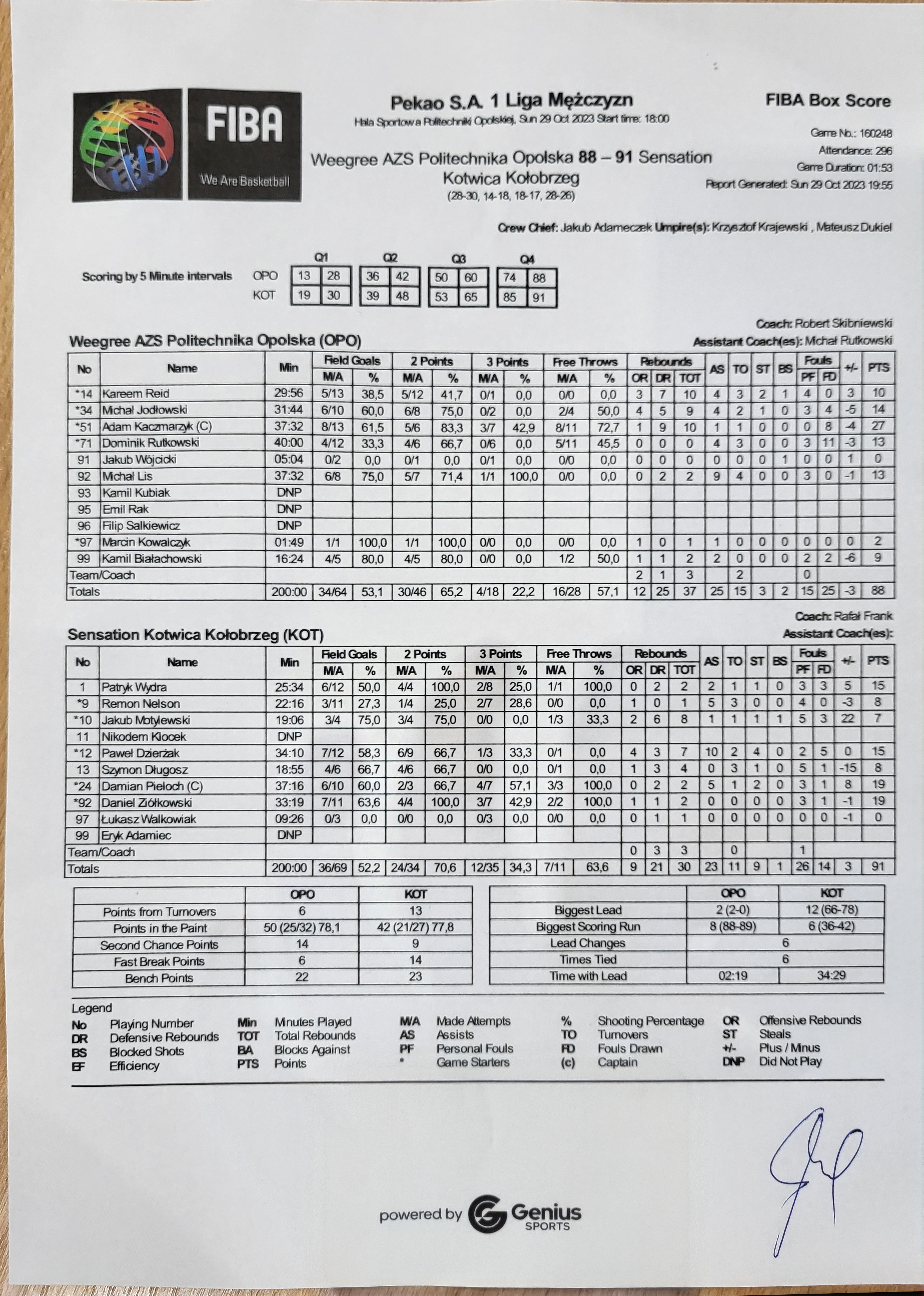 Suma 88 200:00 30/46 65.2 4/18 22.2 34/64 53.1 16/28 57.1 12 25 37 25 15 25 15 3 2 1 97