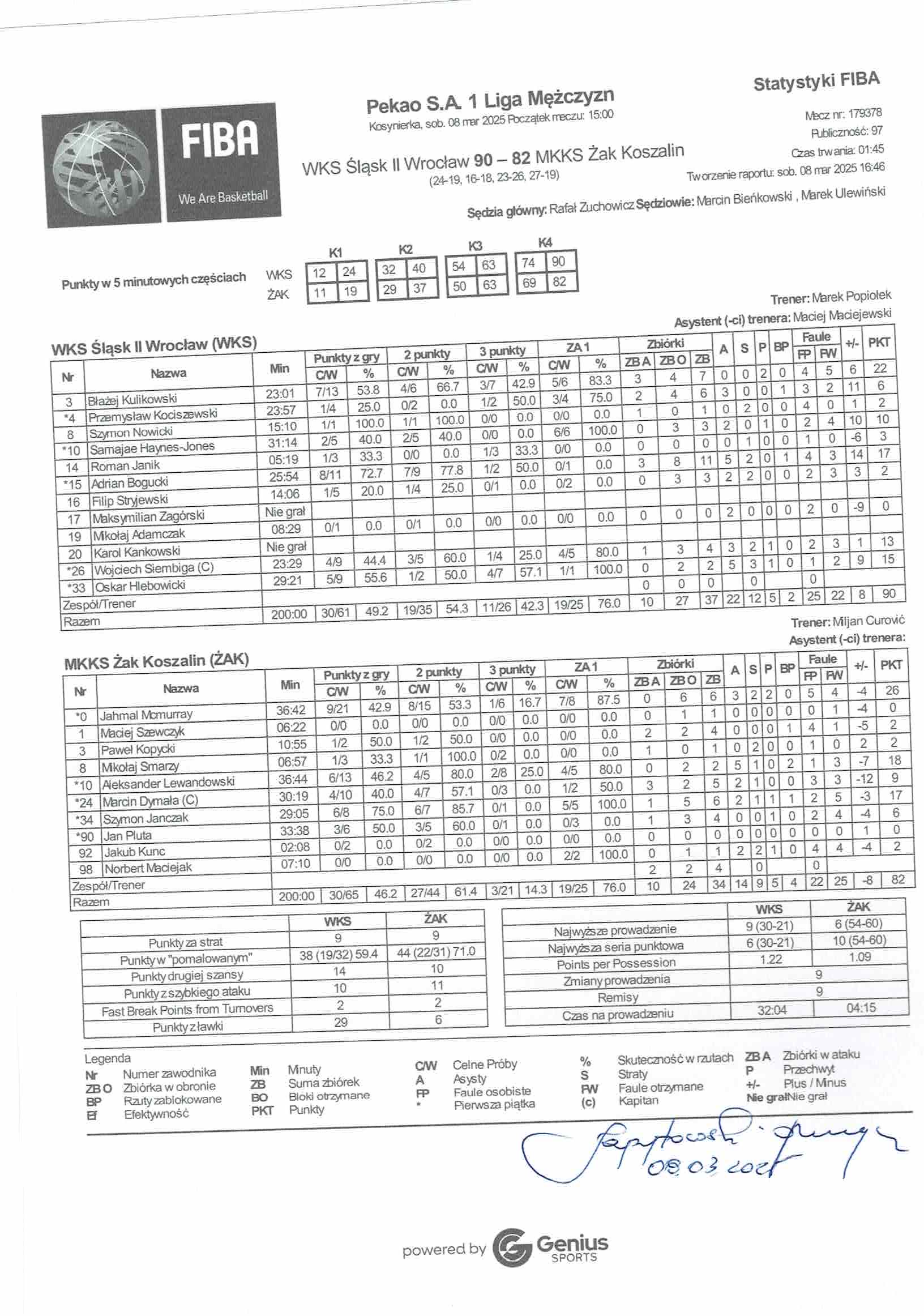 Sędziowie: Rafał Zuchowicz, Marcin Bieńkowski, Marek Ulewiński | Komisarz: Grzegorz Zapytowski