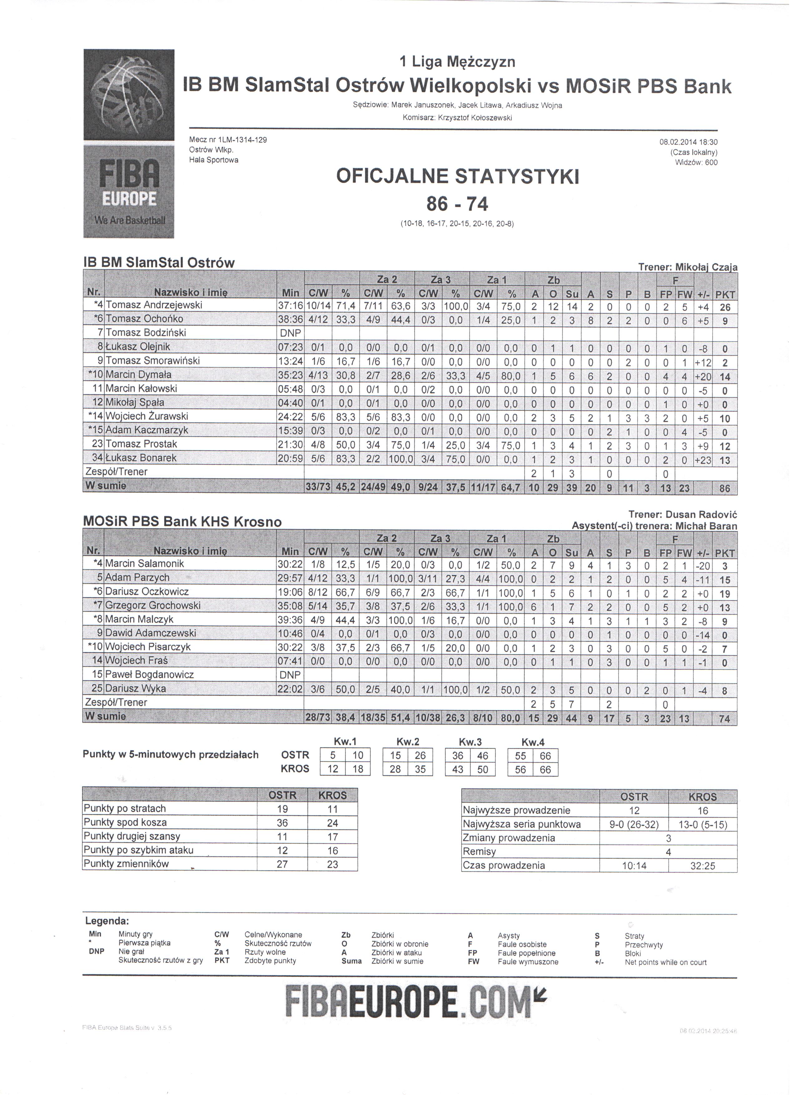 T. Prostak - faul osobisty w akcji rzutowej (1 F, 7 Faul zespołu). Przyznano 2 rzuty wolne. Faulowany: A. Parzych |