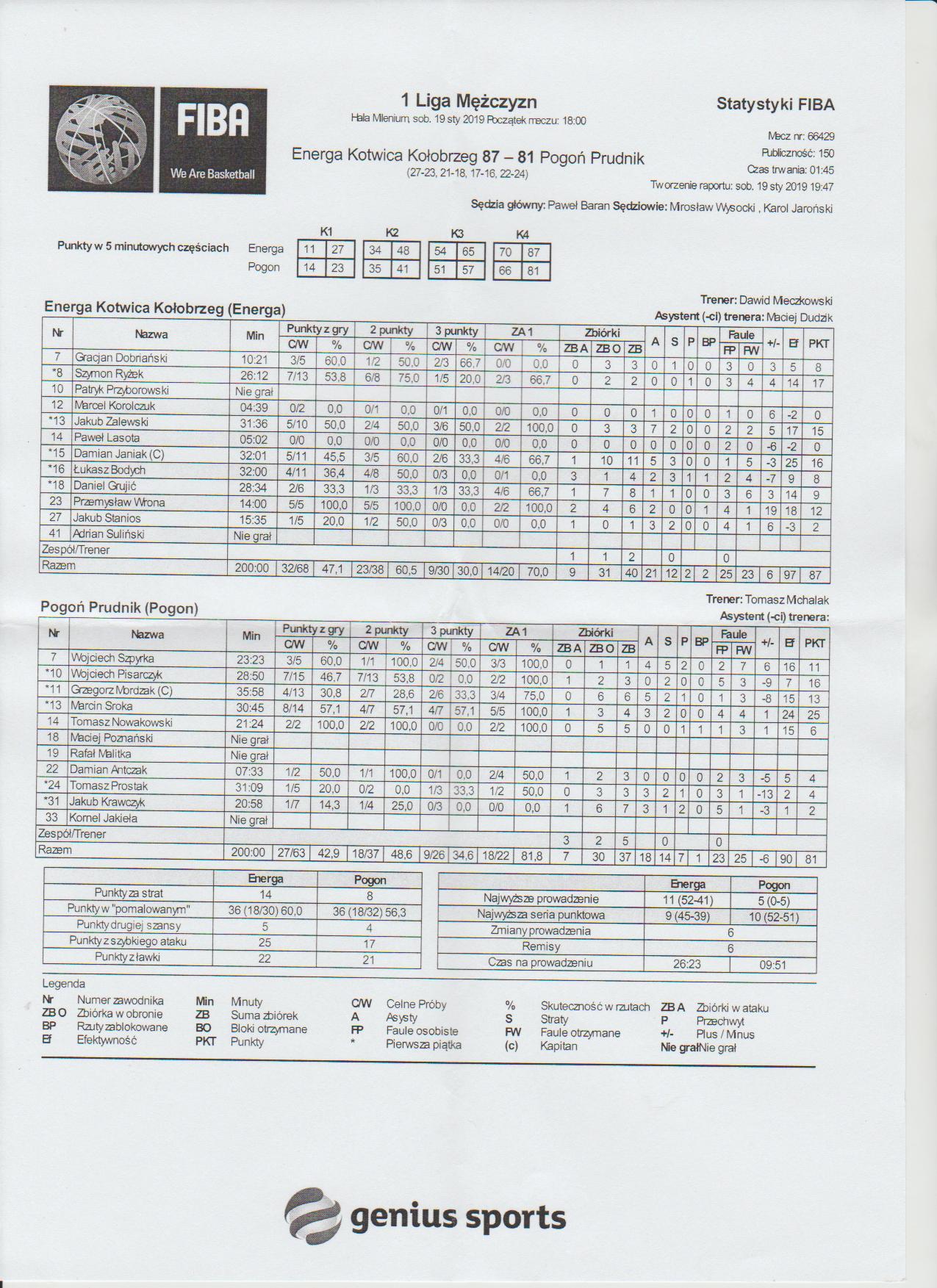 | 10 | Wojciech Pisarczyk | 16 | 28:50 | 7/13 | 53.8 | 0/2 | 0.0 | 7/15 | 46.7 | 2/2 | 100.0 | 1 | 2 | 3 |   | 5 | 3 | 2 |   |   |   | 9 | -9 | |