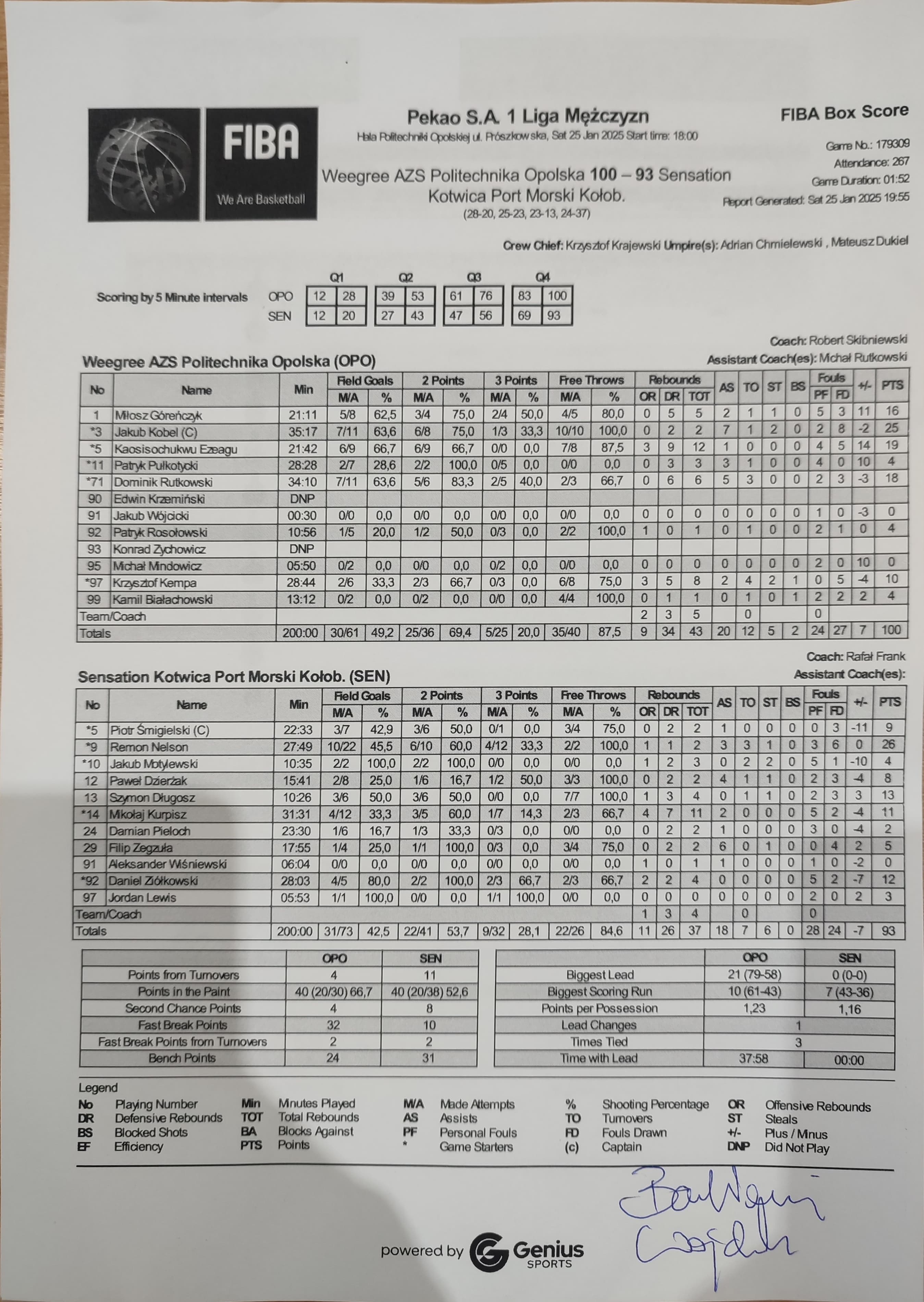 | 14 | Mikołaj Kurpisz | 11 | 31:31 | 3/5 | 60.0 | 1/7 | 14.3 | 4/12 | 33.3 | 2/3 | 66.7 | 4 | 7 | 11 | 2 | 5 | 2 |   |   |   |   | 15 | -4 | |